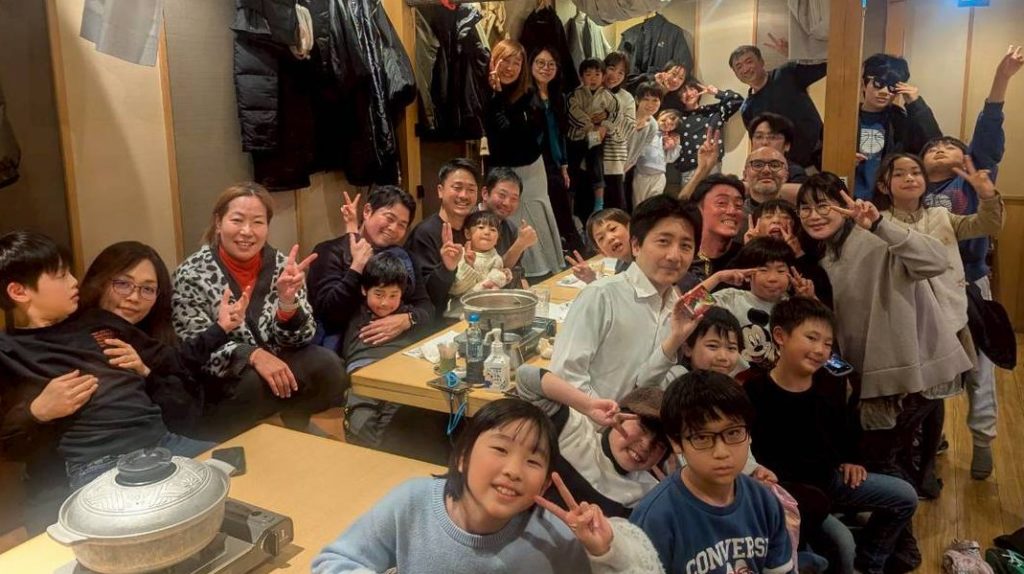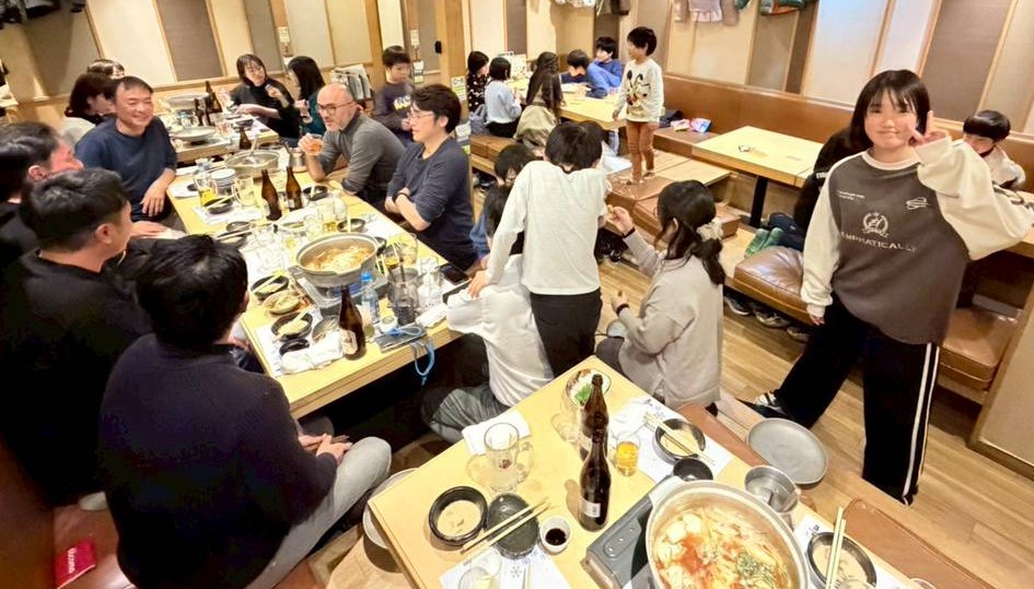 また年内最後の稽古が終わり、高槻支部の忘年会を行いました。大人たちが盛り上がる中、子供たち食事後はトランプ、折り紙などそれぞれ仲良く遊んでいてくれました~